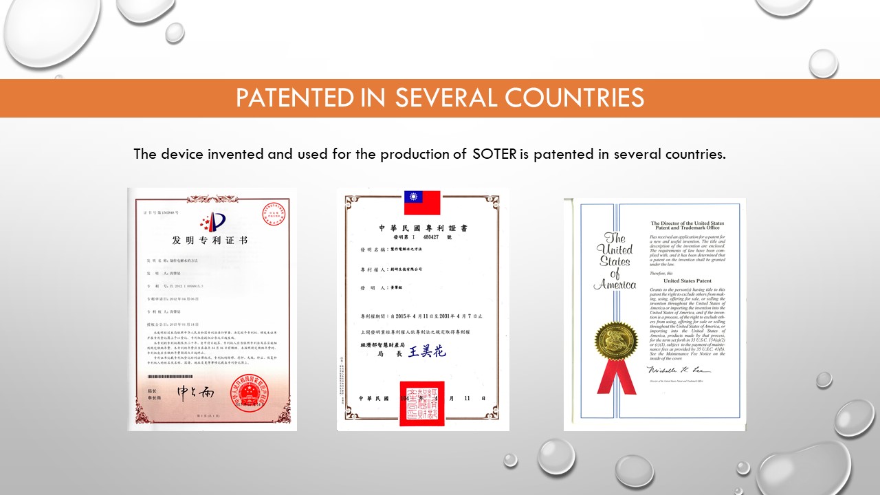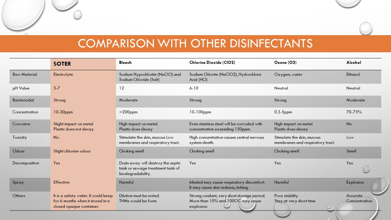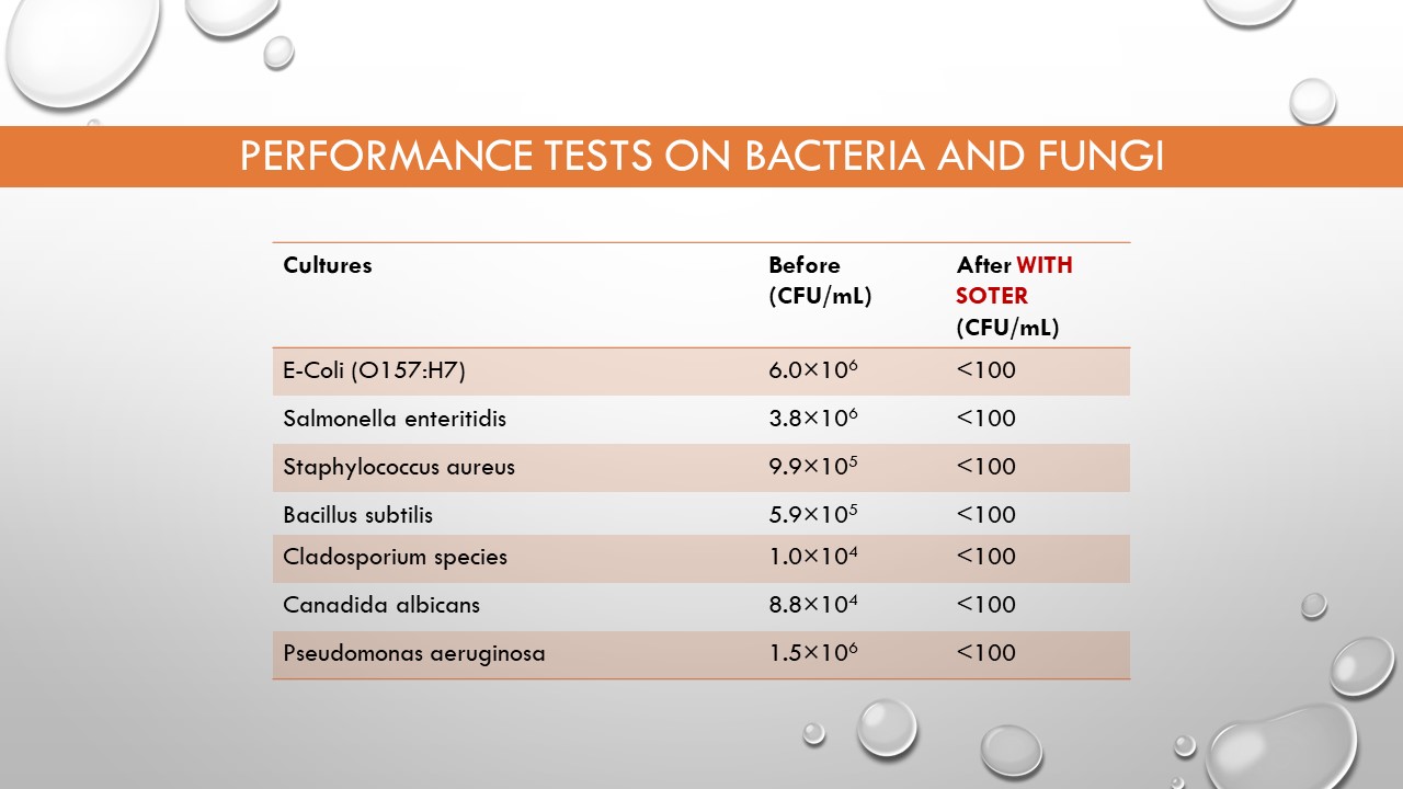 SOTER - Mild Hypochlorous Acid Electrolyte Solution removes 99.9999% of Bacteria and Viruses.